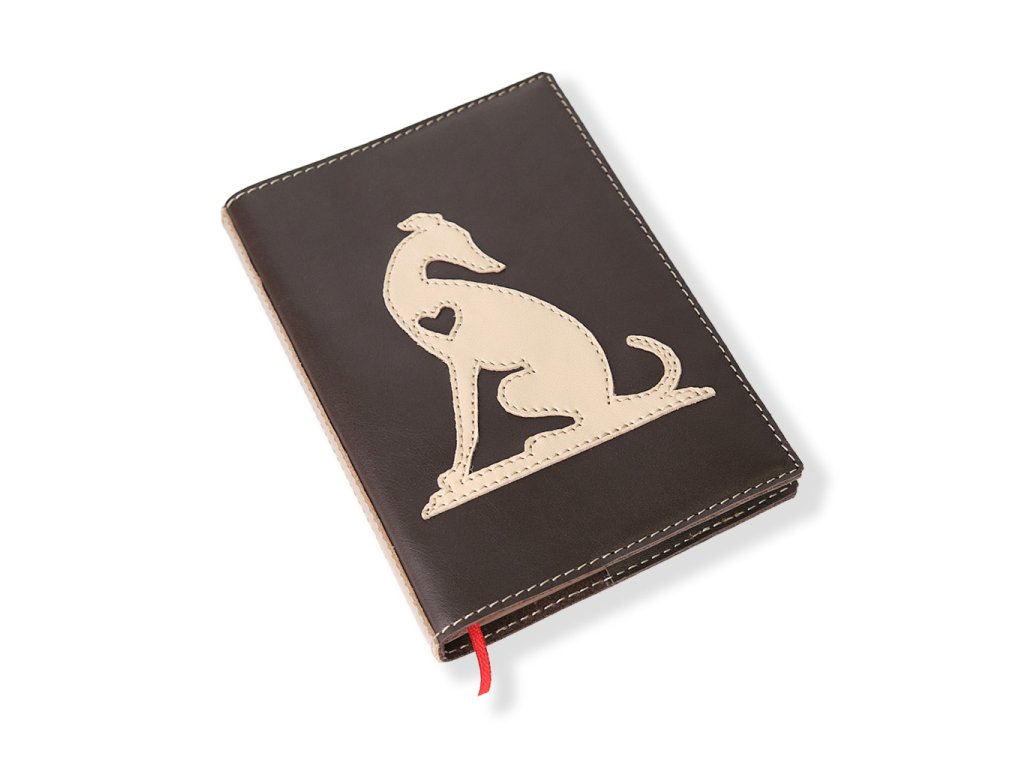 Kožený obal na diář nebo zápisník – chrt se srdcem