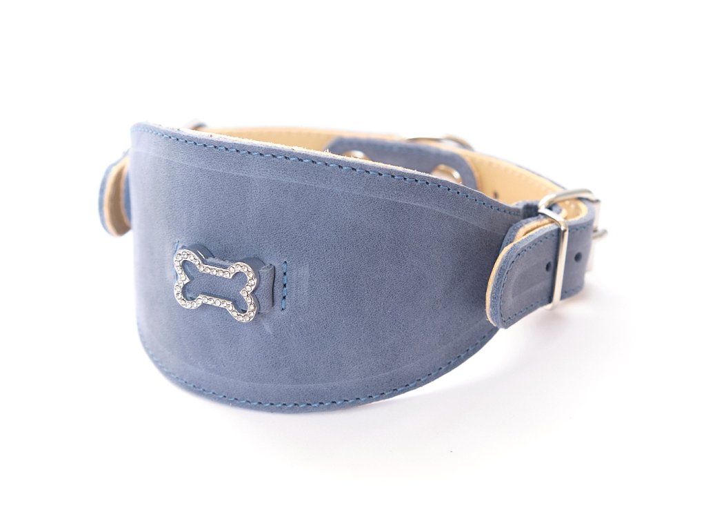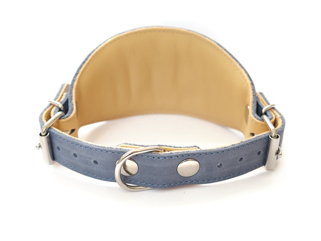 Tato elegantní kožená sada pro chrty kombinuje oranžovou s modrou pro harmonický vzhled. Obsahuje oválný obojek s měkkou podšívkou a pěnovou vycpávkou, kožené vodítko a barevně sladěné doplňky, jako je pouzdro na sáčky a obal na očkovací průkaz. Sadu jsme ušili ve Zlíně z italské lícové hověziny a pro dlouhou životnost jsme použili nerezové kování.