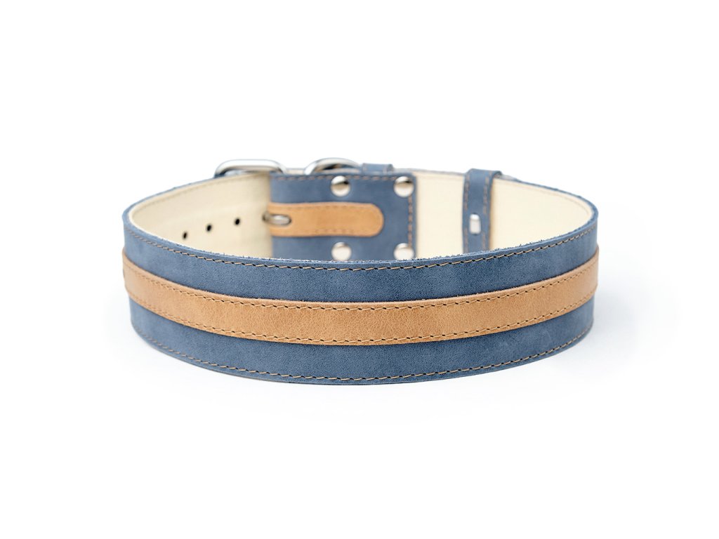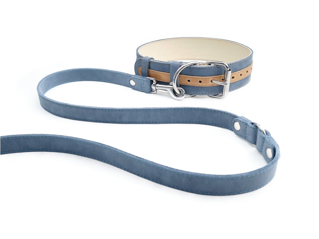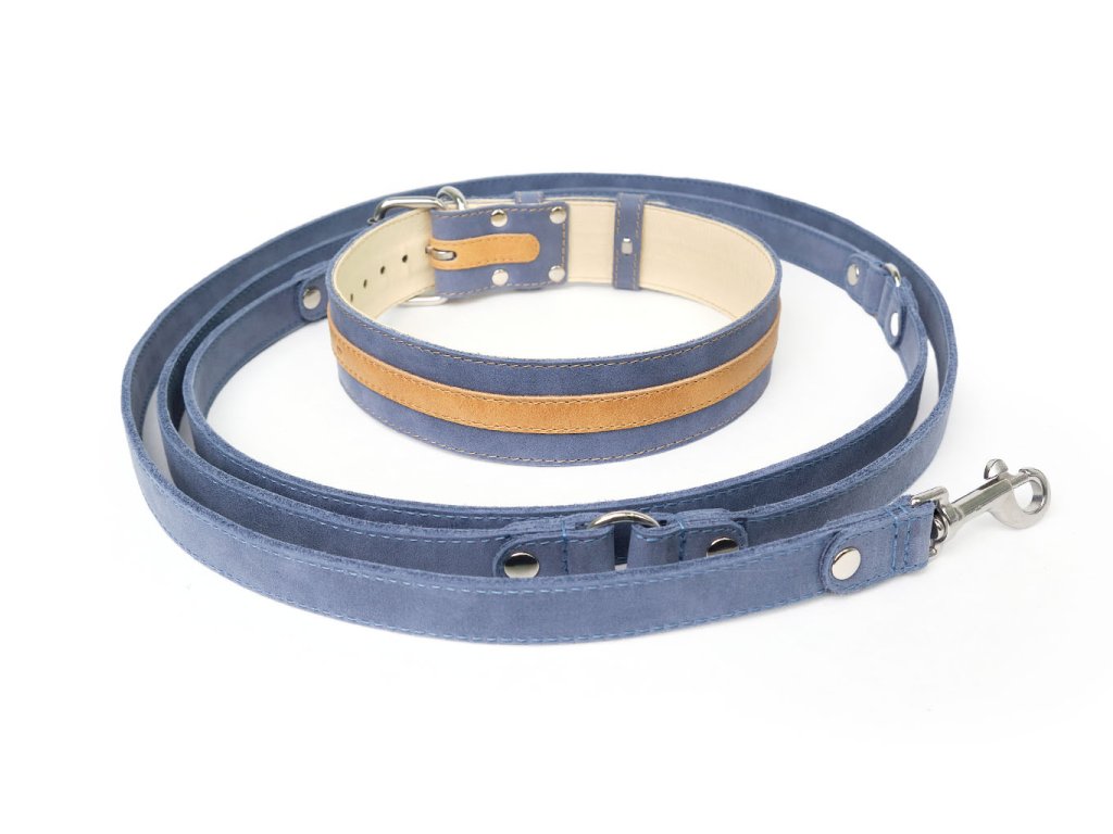 Modrá se zlatým pruhem působí stylově, elegantně a skvěle vynikne na většině srstí. Pokud máte rádi věci, které spolu ladí, tento kožený set obojku a přepínacího vodítka je přesně ten typ výbavy, který se hodí pro každodenní venčení. Sady šijeme z kvalitních lícových usní a kování používáme zásadně nerezové. A abyste se mohli na obojek spolehnout, použili jsme výztuhu z polyesterových vláken pro zvýšení pevnosti v tahu.