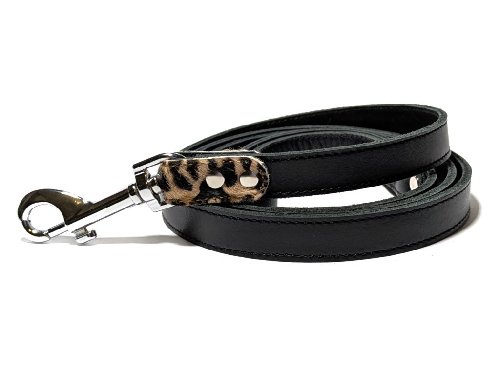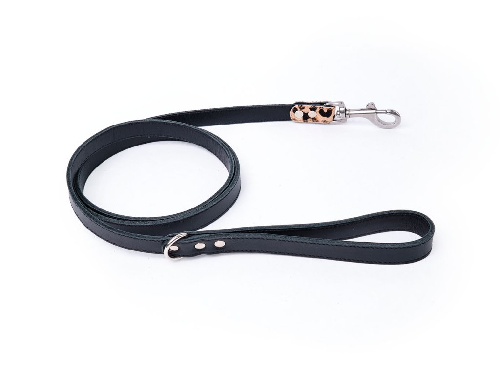 Kožené vodítko z kvalitní italské hověziny a detailem z kůže cavallino, které se hodí do sady s obojkem pro chrty nebo klasickým obojkem s leopardím vzorem.
